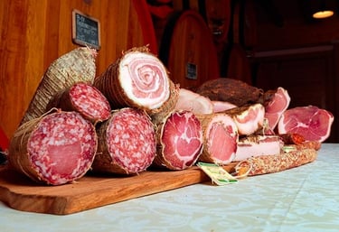I prodotti includono salame, sopressa, porchetta, prosciutto crudo, bondiola, e tagli bovini, ovini, avicoli selezionati localmente. L